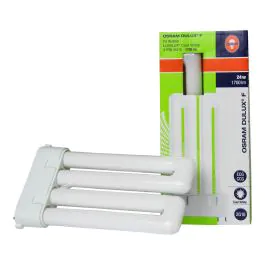 Osram Dulux F lågenergilampor är en kort och kompakt ljuskälla med dubbelrör. Osram Dulux D är effektiva ljuskällor med låg effekt och de används vanligen för dekorativ belysning, allmänbelysning och som orienteringspunkter i hotell, restaurang, kontor, hem, garage och liknande. Osram Dulux F lågenergilampor är lätta att installera tack vare en enkel stiftsockel med 4 stift. Dessa Osram Dulux lågenergilampor ersätter glödlampor och halogenlampor för en energibesparande belysning samtidigt som de har en utmärkt ljusprestanda. Osram Dulux F lågenergilampor är en utmärkt ljuskälla i miljöer där belysningen ständigt lyser som i hallar, trapphus, lager och andra allmänna utrymmen. Var uppmärksam på att lågenergilamporna finns i olika effekter, var därför noggrann vid val av lågenergilampa så att du väljer en som passar i din armatur. Ljuskällorna finns i flera färgtemperaturer, antingen extra varm vit (2700K), varm vit (3000K) eller kall vit (4000K).
